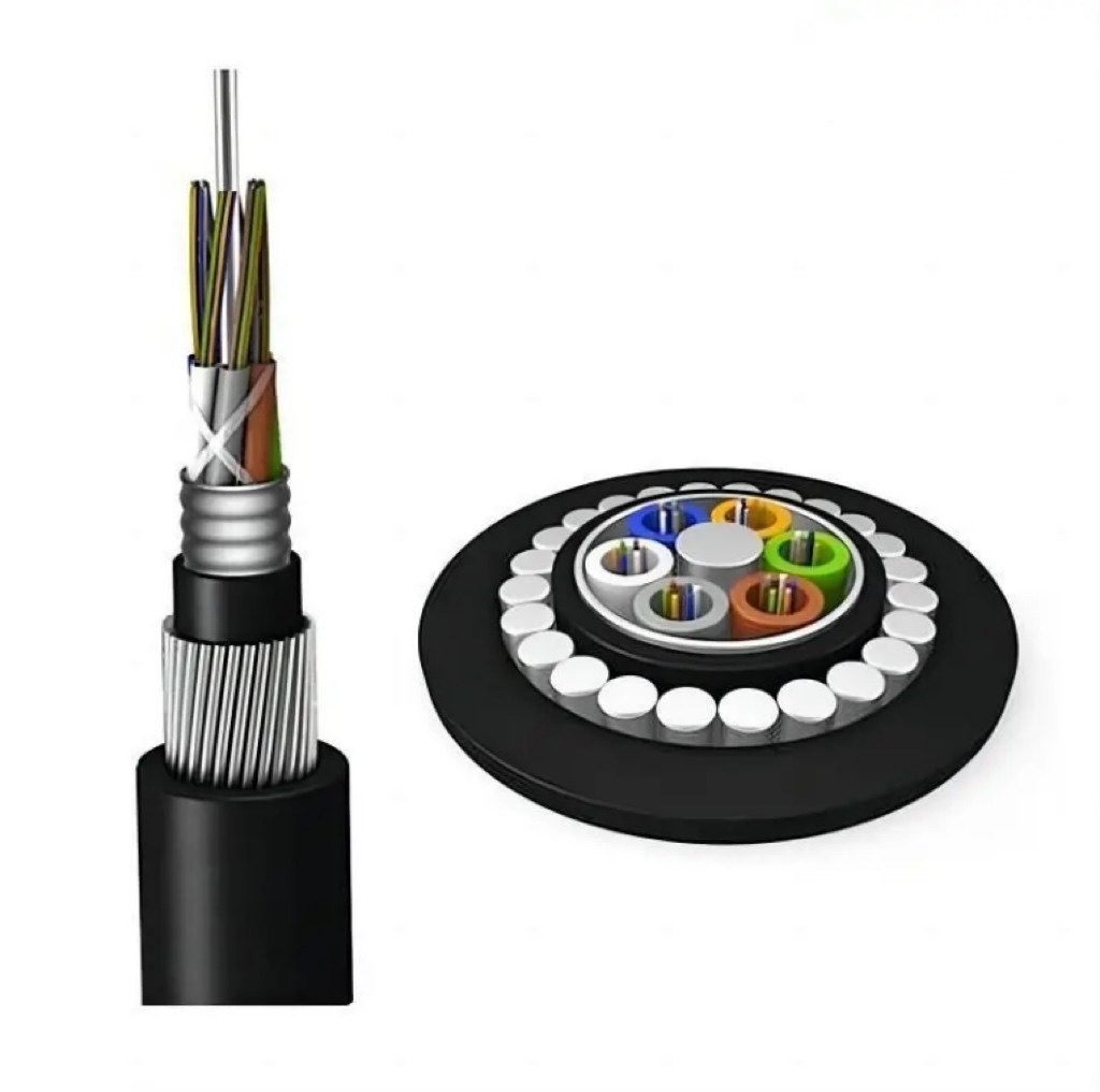В кабеле используются заполненные гелем свободные трубки и водонепроницаемые материалы по всей секции.